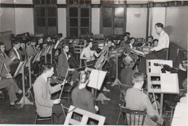 Een repetitie van het Rotterdams Jeugdorkest onder leiding van Nico Ringels. Jaartal 1956? Ik zit bij de tweede violen, vierde naar links vanaf de dirigent.